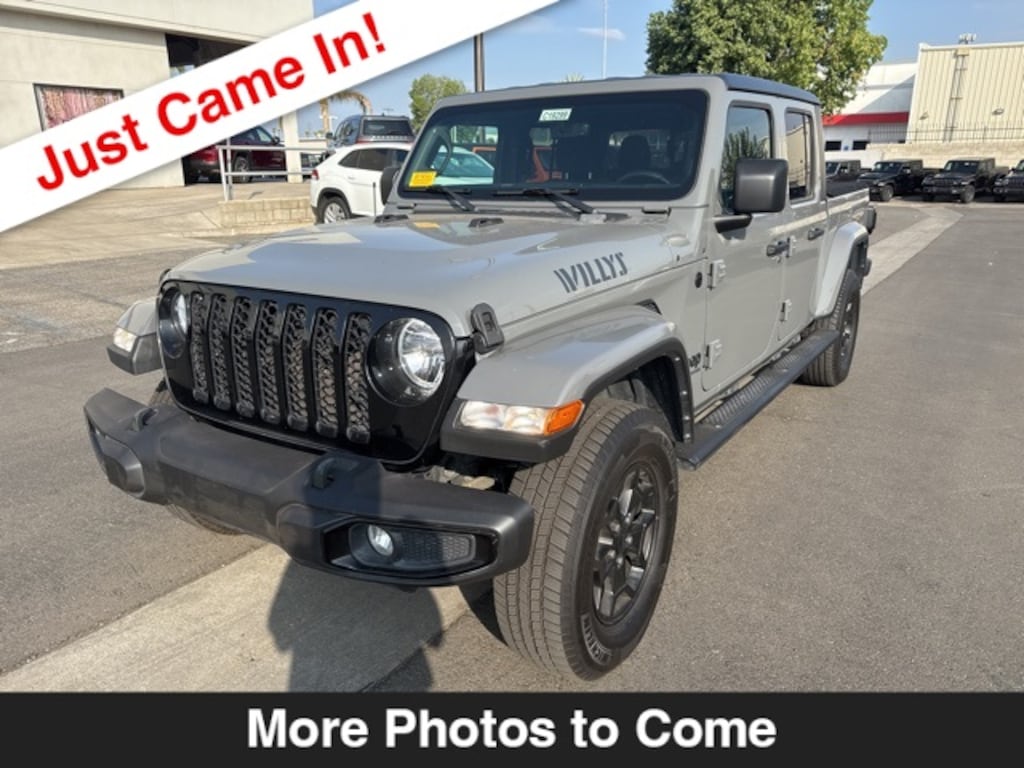 Sting-Gray Clearcoat 2021 Jeep Gladiator Willys 8-Speed Automatic 3.6L V6 24V VVT Clean Carfax, One Owner Carfax, Gladiator Willys, 4D Crew Cab, 3.6L V6 24V VVT, 8-Speed Automatic, Sting-Gray Clearcoat, Black Cloth, 115V Auxiliary Power Outlet, 220 Amp Alternator, 240 Amp Alternator, 4-Wheel Drive Decal, 400W Inverter, 700 Amp Maintenance Free Battery, 8.4" Radio & Premium Audio Group, Alpine Premium Audio System, AM/FM radio, Anti-Spin Differential Rear Axle, Apple CarPlay, Automatic Headlamps, Auxiliary Switch Group, Auxiliary Switches, Black 3-Piece Hard Top, Black Grille, Black Trail Rated Badge, Blind Spot & Cross Path Detection, Body Color Fender Flares (2-Piece), Brake assist, Class IV Hitch Receiver, Cloth Low-Back Bucket Seats, Cold Weather Group, Convenience Group, Daytime Running Lamp System, Deep Tint Sunscreen Windows, Electronic Stability Control, Front fog lights, Front Heavy Duty Red Accent Shock Absorbers, Google Android Auto, GPS Navigation, Heated Front Seats, Heated Steering Wheel, Heavy-Duty Engine Cooling, LED Taillamps, Mold In Color Bumper w/Gloss Black, MOPAR Spray In Bedliner, Off-Road Info Pages, ParkSense Rear Park Assist System, ParkView Rear Back-Up Camera, Protection Sill Rails, Quick Order Package 24W Willys, Radio: Uconnect 4C Nav w/8.4" Display, Rear Heavy Duty Red Accent Shock Absorbers, Rear Sliding Window, Rear Window Defroster, Remote Keyless Entry, Safety Group, Security Alarm, SiriusXM Radio Service, Technology Group, Trailer Hitch Zoom, Trailer Tow Package, Universal Garage Door Opener, Wheels: 17" x 7.5" Black Aluminum w/Gray Pad, Willys, Willys Hood Decal. CARFAX One-Owner. Clean CARFAX.