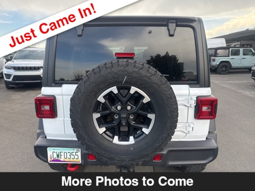 Bright White Clearcoat 2025 Jeep Wrangler Rubicon 8-Speed Automatic 2.0L I4 DOHC Clean Carfax, Wrangler Rubicon, 4D Sport Utility, 2.0L I4 DOHC, 8-Speed Automatic, 4WD, Bright White Clearcoat, Black Cloth, AM/FM radio: SiriusXM, Apple CarPlay/Android Auto, Auxiliary Switches, Black 3-Piece Hard Top, Brake assist, Class II Receiver Hitch, Cloth Low-Back Bucket Seats, Electronic Stability Control, Front Bucket Seats, Front fog lights, Fully automatic headlights, Panic alarm, ParkView Rear Back-Up Camera, Performance Suspension, Quick Order Package 22R Rubicon, Quick Order Package 23R Rubicon, Radio: Uconnect 5 w/12.3" Display, Rear Window Defroster, Rear Window Wiper/Washer, Remote keyless entry, Security system, Split folding rear seat, Wheels: 17" x 7.5" Machined w/Black Pockets. CARFAX One-Owner. Clean CARFAX.